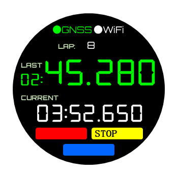 液晶画面には、GPSの測位情報やラップタイムの計測情報をリアルタイムに表示。